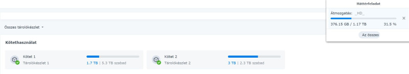 Nem tudom, hogy ez a BTRFS-es anomália egyedi hiba-e nálad. Én most rákerestem a neten, és csak az AI összefoglaló említett lehetséges BTRFS problémákat 7.3 telepítése után, de más jellegűeket, ezt a helyfoglalási dolgot ott sem említik. Konkrét user panaszt nem is találtam. Nem akarom elhinni, hogy a Synology üzemszerűnek gondolná azt, hogy az ember letöröl 5 terát, és az napokig nem szabadul fel. Hogy ez feature, és nem bug lenne.