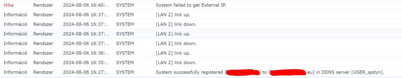 -Miért van, ha beállítok egy DDNS-t akár Synology, akár másik, akkor 1-2 órán belül nem kapcsolodik, jön a naplófájlban a "get External IP " hiba, meg a tartománynév feloldása sikertelen volt..., és ha frissítem, akkor jó esetben ideig-óráig megy, vagy ha nem akkor kidobja, hogy lépjen kapcsolatba a Synology-val? -