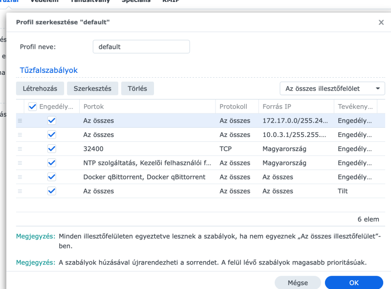 biztos, hogy ez jó így ? Magyarországtól minden port elérhető ?? Nálam pl csak a torrent ami elérhető minden országból . Minden más csak Magyarország . És nem kell három sor a többi országhoz csak egy összes IP cím .Eleve ami port nincs használatban ne legyen elérhető ! és persze alap port számokat meg kell változtatni .
