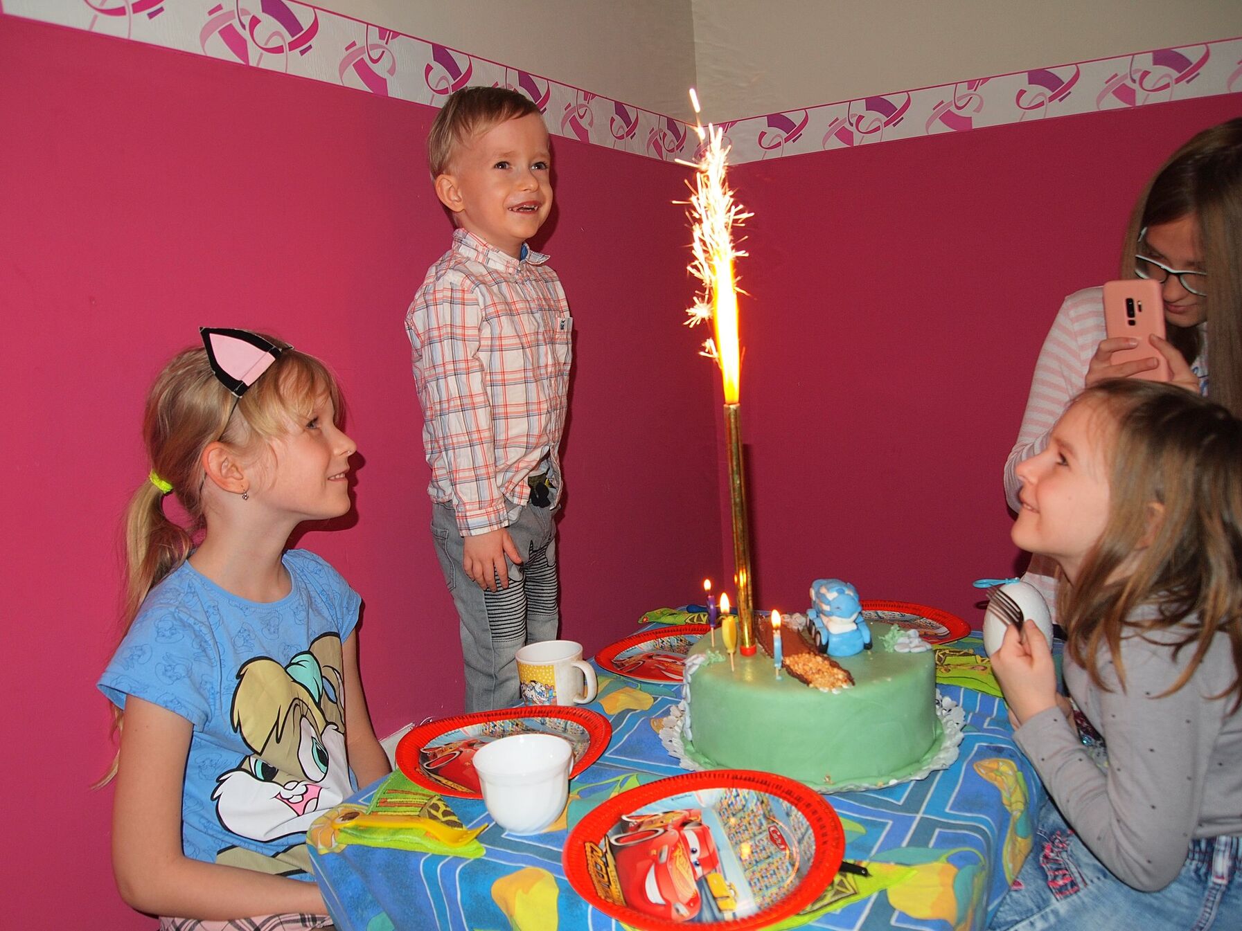 Édesem takarított mert ma tortázunk. Ugyan szerdán lesz csak Boldi 4 éves de előrébb hoztuk ennyivel. Sárinak is névnapja van szóval egy közös ünneplés lesz.