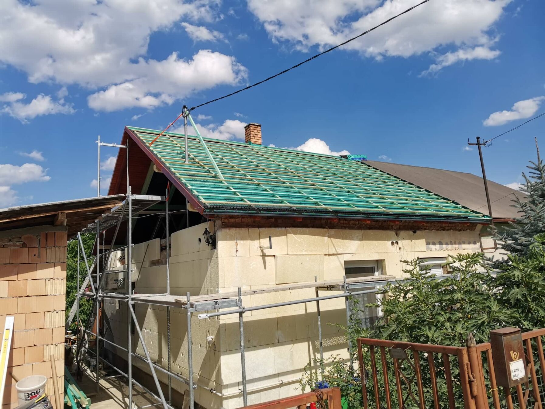 Tegnap bontottunk és építettünk is. Igazából a mai napra dolgoztunk leginkább hogy a fóliázással tudjunk végezni és ne tudjon beázni a kecó. Szombaton egy újabb tetőfelújítást fogok megnézni. Ez az év valahogy most erről szól.