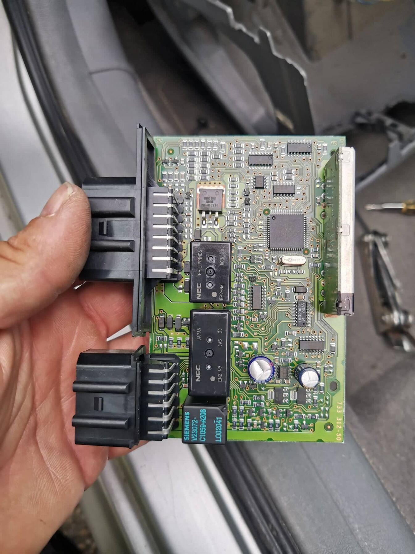 Tovább haladtam és az ajtóban lévő ablakemelő elektronikára ránéztem mert minden vezeték ott összpontosul. Itt azért már akad némi elváltozás a nyákon. [kép] Körbenéztem és nem nagyon lehet kapni ilyet. Bent vagyok a fácsén egy mk1. octavia csoportban ahol ajánlottak egy cseredarabot 35e.- forintért. Huhhh. Ez kicsit húzósnak tűnik. Írtam e-mailt a Siójuti autóbontónak hátha ott van olcsóbbért. Addig marad ez a vegetatív állapot.