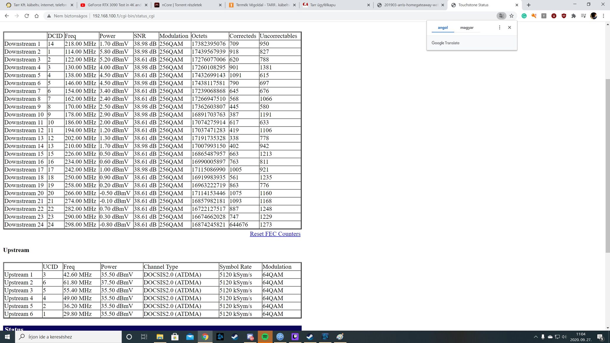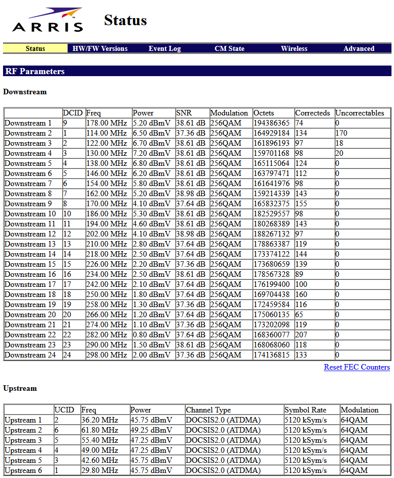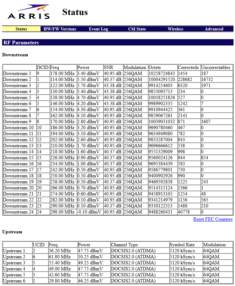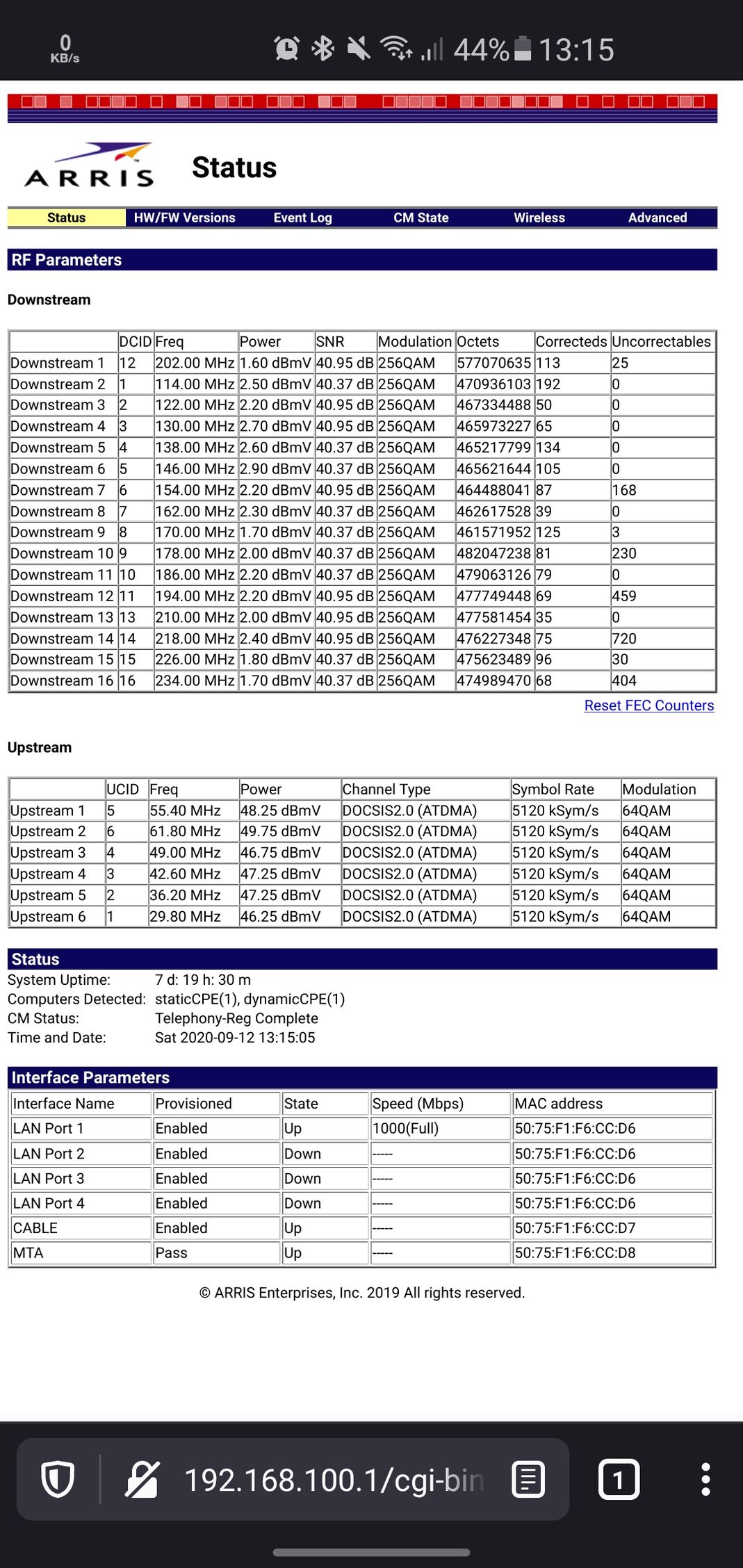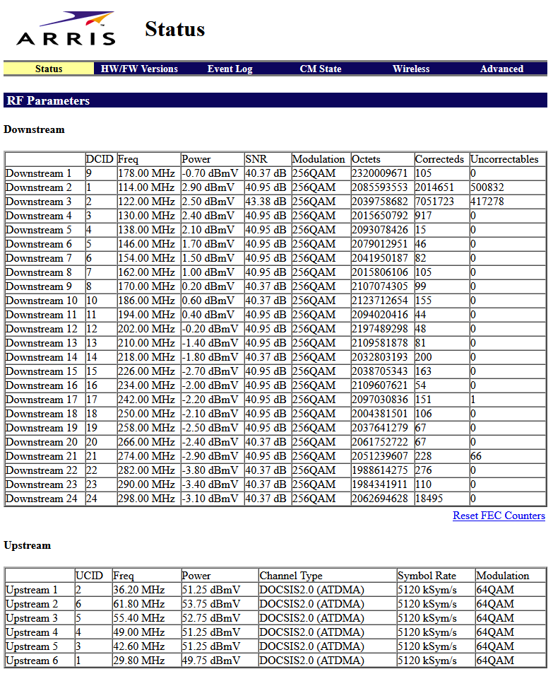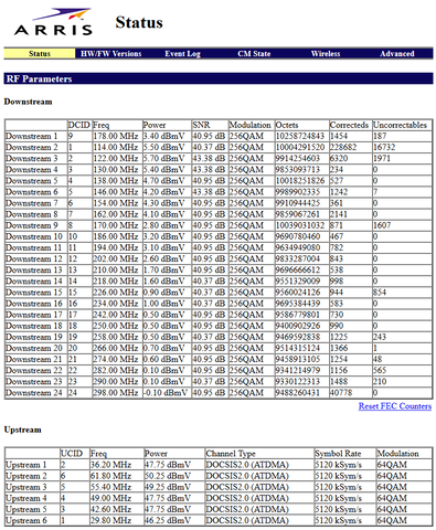 Ahogyan én látom: le irányban power gyengült, SNR kb. maradt, fel irányban power erősödött, sajna 50 fölé. Engem a 2-es és 3-as Downstream javított és javíthatatlan csomagjainak száma aggaszt, bár előtte is volt valamennyi ugyanitt.