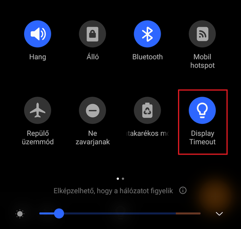 csináltam egy task-ot, amivel 1 perc és 23 óra (cél a végtelen lenne, de ez is bőven elég) display timeout között váltogatok. [kép] Lehúzható gombok közé is betettem ezt. Azt hogy lehet megcsinálni hogy a gomb tükrözze a timeout mértékét? Jelenleg a 2 érték között váltogatva végig kéken, azaz bekapcsolva marad a kapcsoló. Jó lenne ha 1 perc timeout esetén szürke, és 23h esetén kék lenne