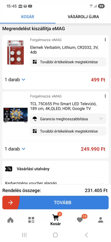 Ugy gondolom legalább is én,hogy az olcsóbb terméknél a forgalmazó és a szállító is legyen eMag a gyorsabb szállítás érdekében!