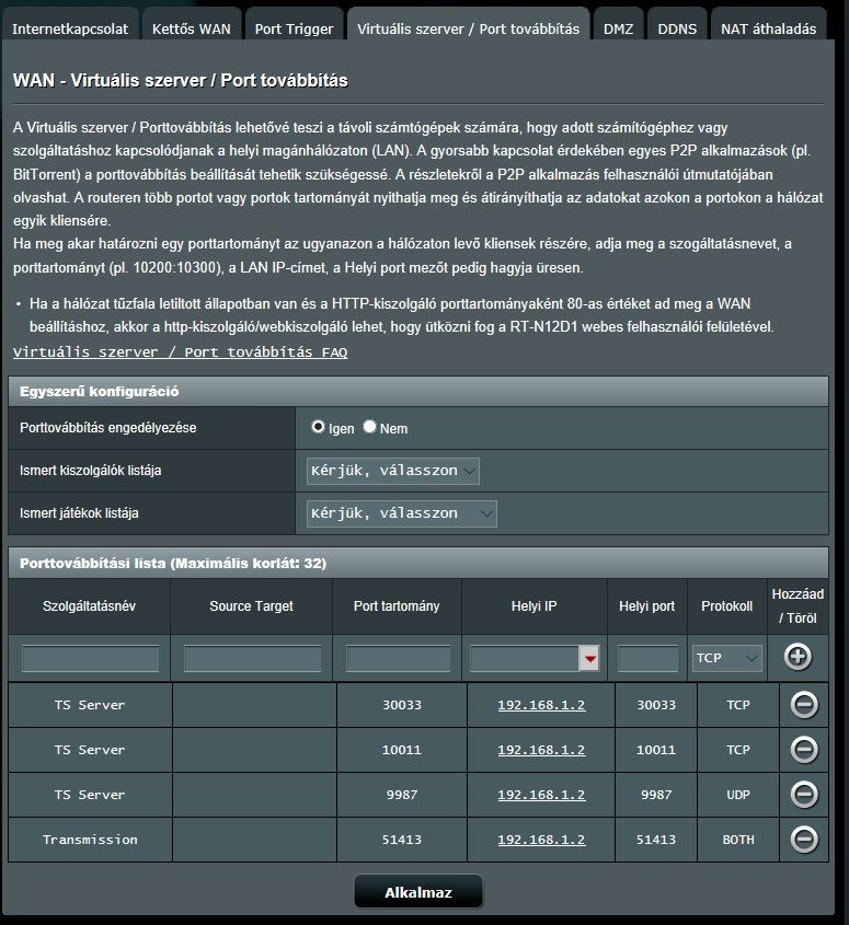Esetleg valami más megoldás a port nyitásra routeren belül? -