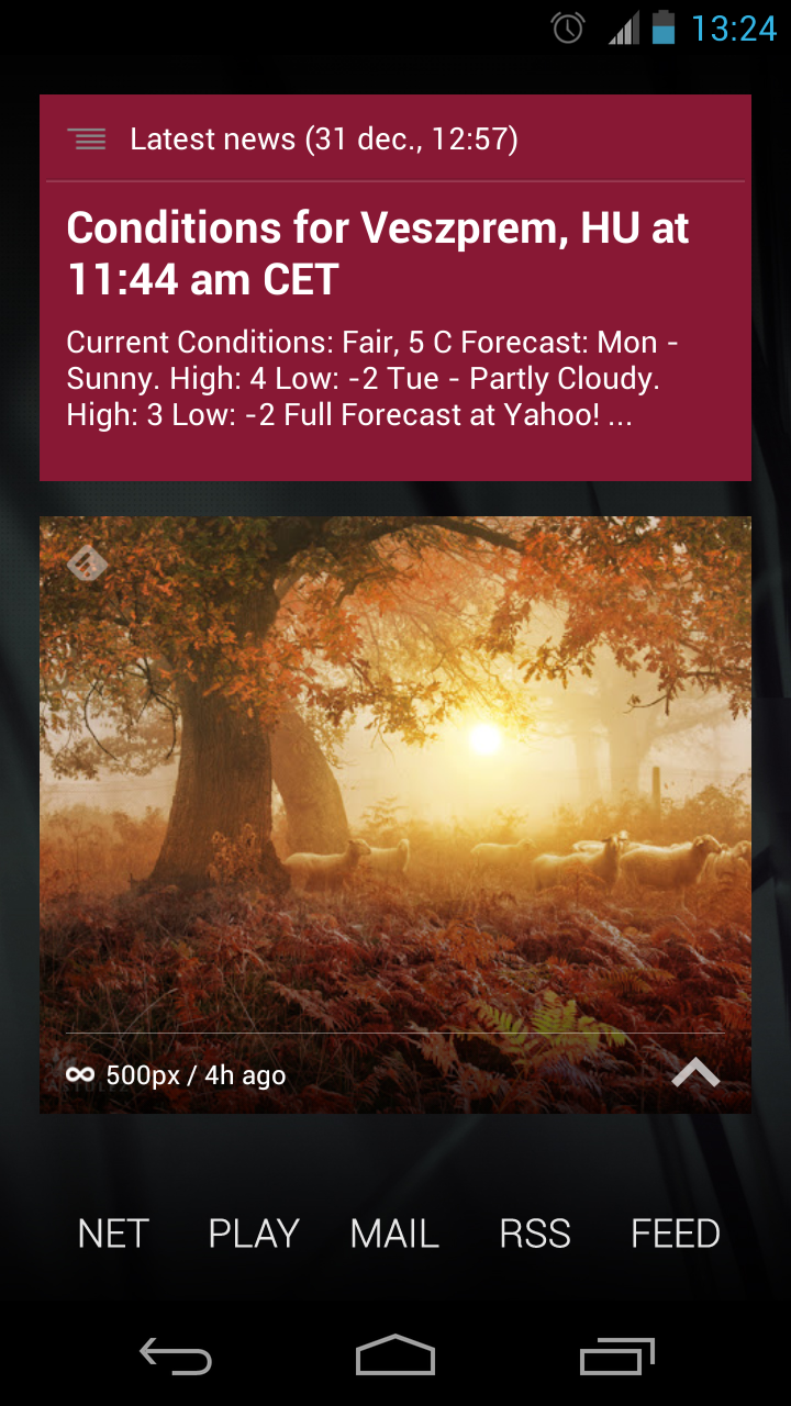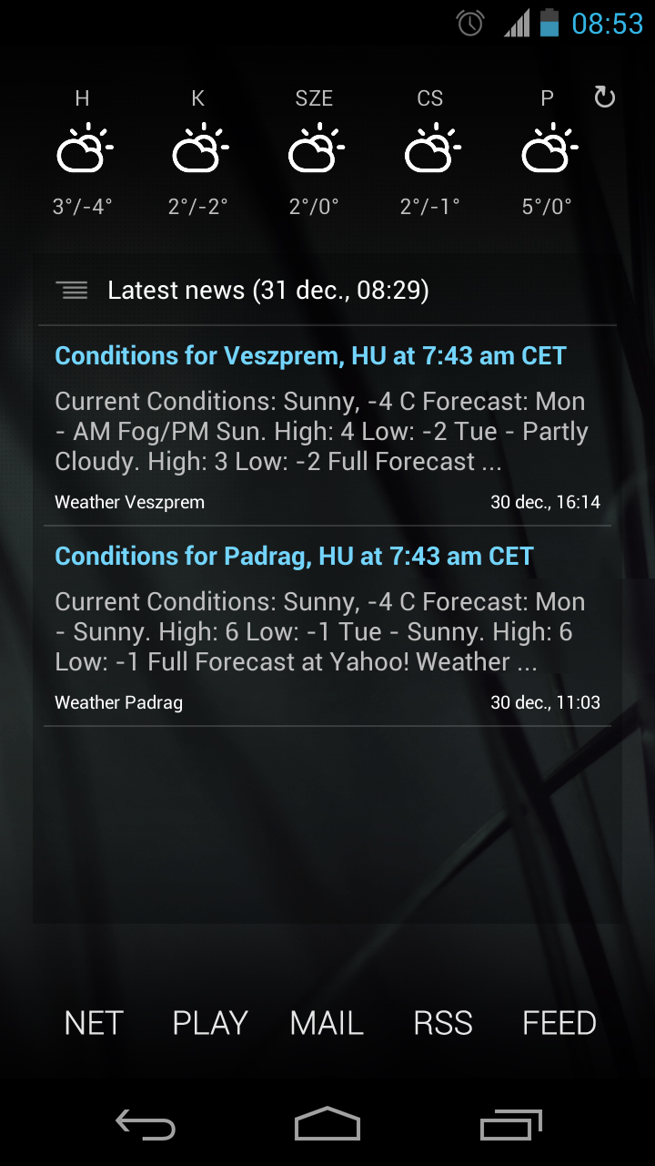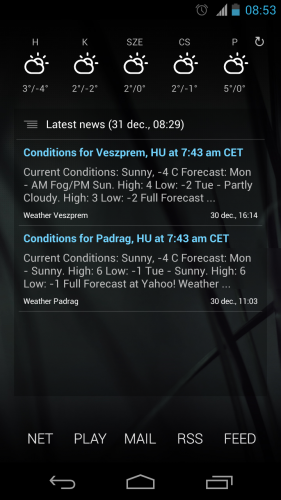 Minimalista de jól testre szabható RSS widget. Spec. én időjárás előrejelzésre (a felső piktogramok a Eye In Sky Weather programhoz tartoznak, a Scrollable News Widget alatta van) használom, de természetesen bármilyen hírforrást meg tud jeleníteni.