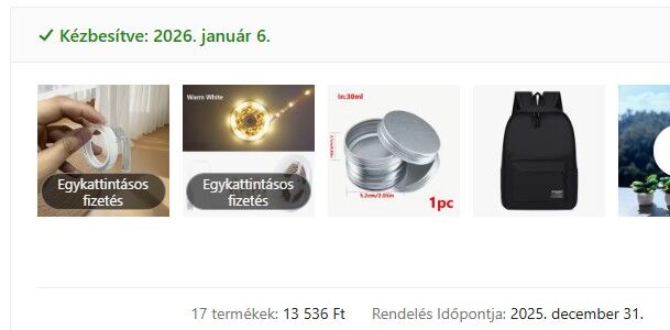 december 31.i rendelés, és a mai, január 6.-i kézbesítés..