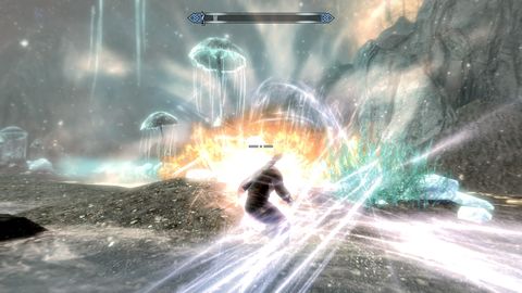 Mókás, hogy a sok végigjátszás alatt sosem idéztem meg. Mondjuk most is teljesen véletlenül, ugyanis a gömb felett harcoltam a párkányon jó pár falmerrel és ment rájuk az Unrelenting Force és akkor ezek szerint épp eltaláltam a gömböt is.