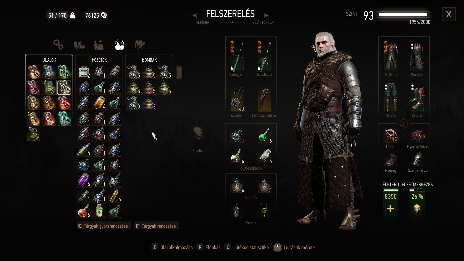 Emellett ugye megfelelő Kiváló olajokat használok, ami az adott ellenfél ellen +50% sebzést biztosít, ehhez jönnek még a Kiváló Villámfőzetek +35%-kokkal, és Kiváló Fecskék, így kellemesen ütőképes konfigot tudtam kialakítani. Ehhez persze kellett a magasfokú alkímiai mutáció, hogy ennyi főzettől ne murdeljek meg, tehát az alap 100 helyett most 266 a főzetmérgezés lehetséges szintje, és nem sebez, ha túl magas az érték (+1800 életerő a mutációk miatt).