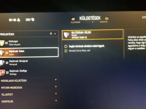 és az a jelenlegi küldi, hogy segítsek Keira Metznek, de nem tudom, hogy mit is kéne neki segíteni, lehet hogy elakadtam. Ugyanígy vagyok azzal a küldivel is, hogy "segíts Trissnek elrendezni Novigradi teendőit" . Ennyire hülye lennék, vagy valamit figyelmen kívül hagyhattam?