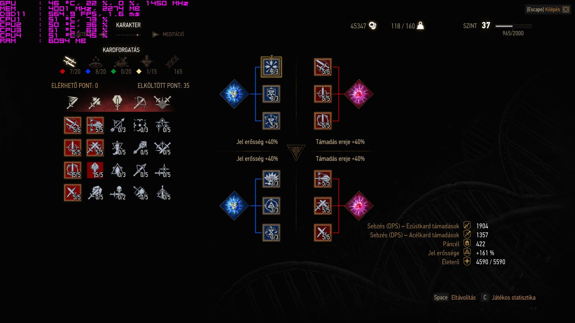 Más: jelek közül a Quen alternativ képességét mindenképpen érdemes szerintem megtanulni és felfejleszteni, baromi hasznosnak találtam. Mikor megtámadnak a staminád csökken az életerőd viszont felfele megy.