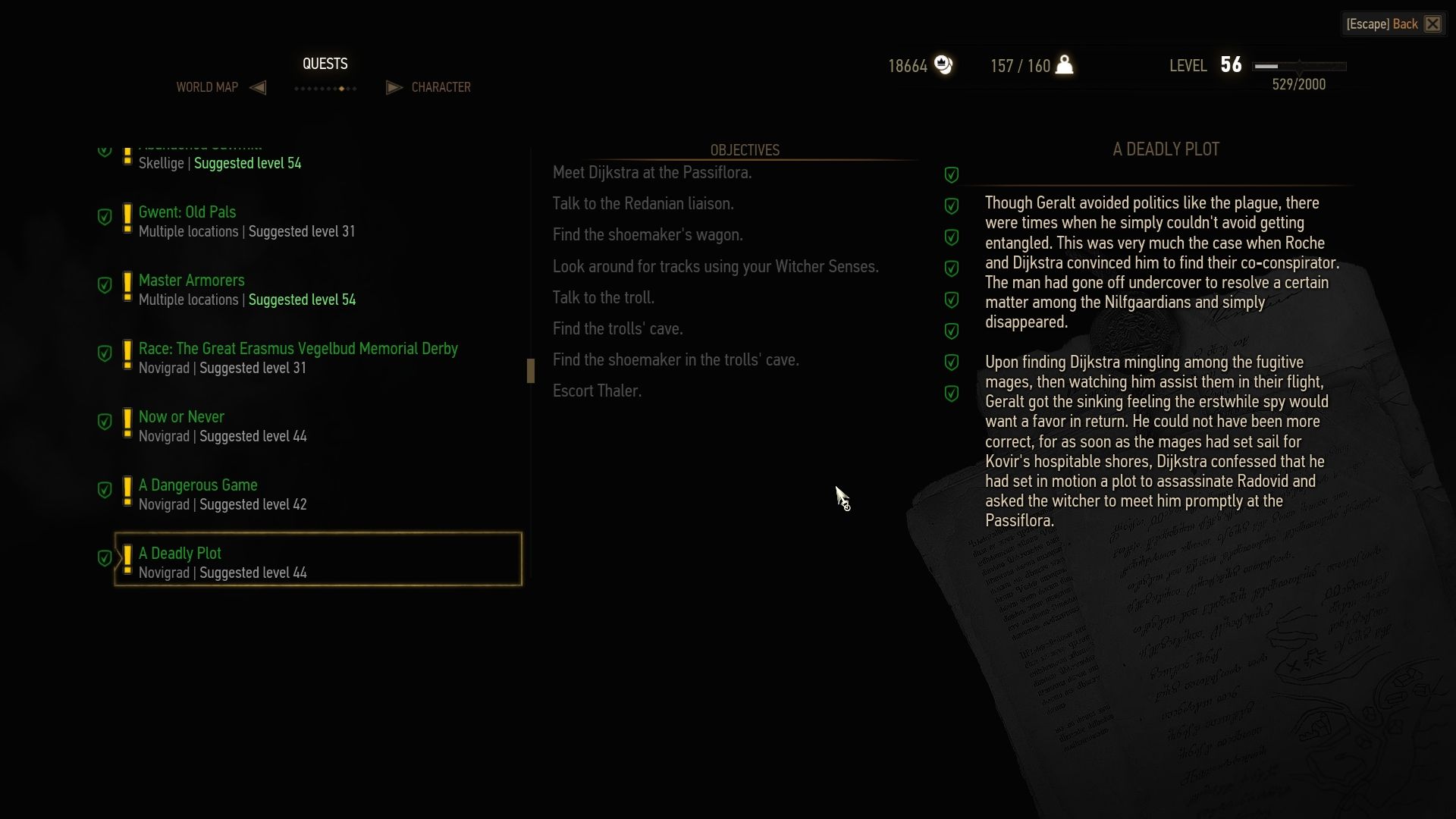 Most játszom másodjára, és most sehogy nem találom Philippa-t. Megcsináltam a "A deadly plot"-ot, és nem dob új lehetőséget. Ki akarnám nyírni Radovid-ot. Már majdnem minden mellékküldit megcsináltam (amiket felszedtem), de semmi erre utaló jel nincs. Most elhajóztam a Ködszigetre megnézni, hogy mi lesz, de a "A deadly spot"-ot sikertelennek dobja. Pedig ott van a "completed" listában. Hol kavartam el? Trisst most hagytam elhajózni, mert Yen a választott. -
