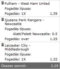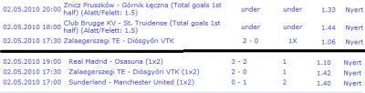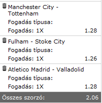 Alábbi meccsekre fogadtam: