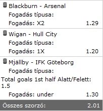 Ma érdemes valamire fogadni? Az Arsenal szerintetek nyer a Blackburn ellen? Elég jó, 2-es szorzó van rá.