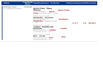 Várható nyeremény: 33355 FtHa minden meccset külön raktam volna 1k-val, akkor 3.310 Ft hasznom lenne.