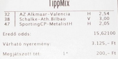 Össznyeremény: 9 460 FÉn mára egy ilyen papírformát néztem