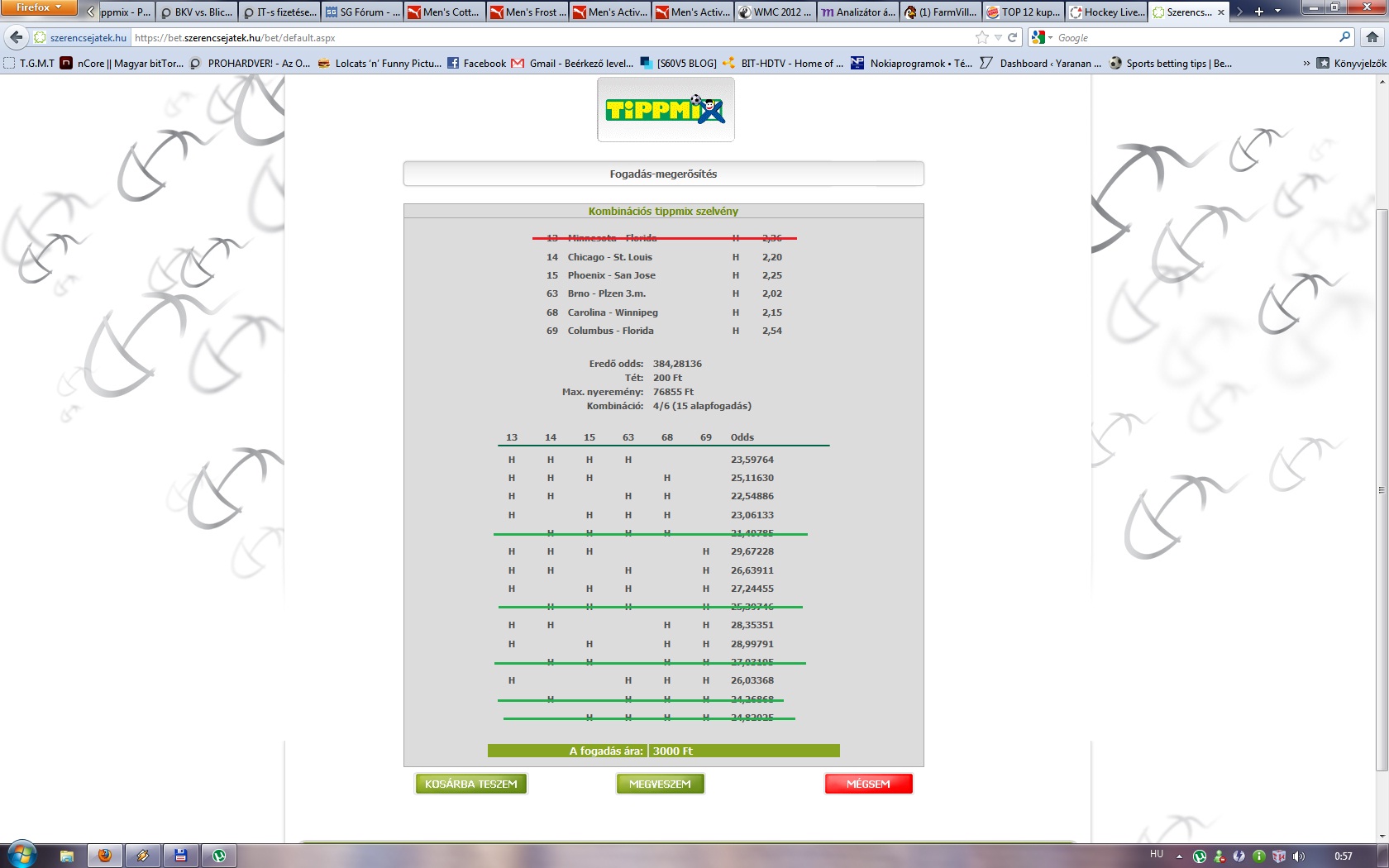 Tettem egy 4/6-ot ebből 1 már tuti elment, 2 meccs bejött, 3 jégkorong még éjjel lesz.