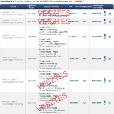 100-100ft-tal meglőttem hogy első gólszerző Benzema - francia győzelem, 8x odds, ugyanezt Ribéry-vel (10x odds), és Nasrival (13x odds)