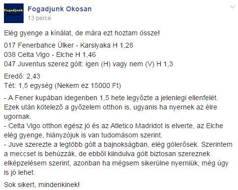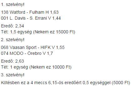 De tegnapra 3 apró oddsot választottak ki... Amit én magamtól megtettem 3 órával azelőtt, hogy kirakták volna..