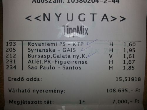 Másrészről az a banda, aki 5 db 2/1-et szőr, annak a 6. sem akadály...