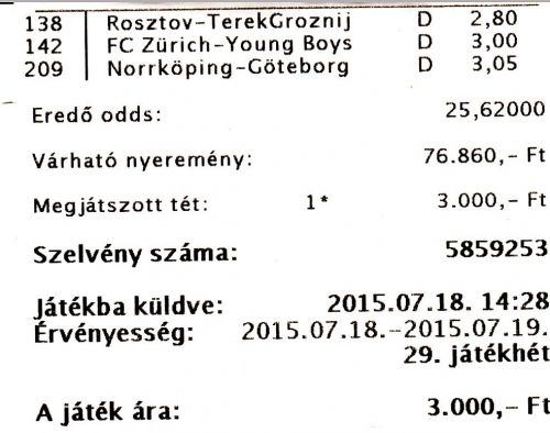 2015.07.19. 21:00 Santos 32,00Tét összesen 400 Ft