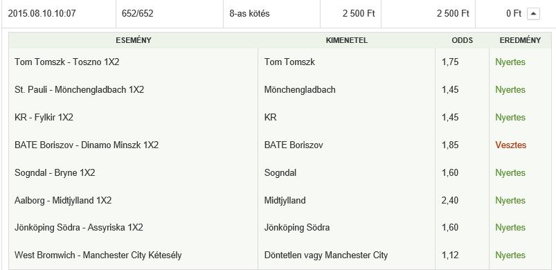 Kösz, hogy szóltál a Tom Tomszk miatt, élőben tettem 2-ért és 2,4-ért 1000-1000 forinttal, hogy lesz gól az 1. fi-ben. Ott is van, mehet a kövi