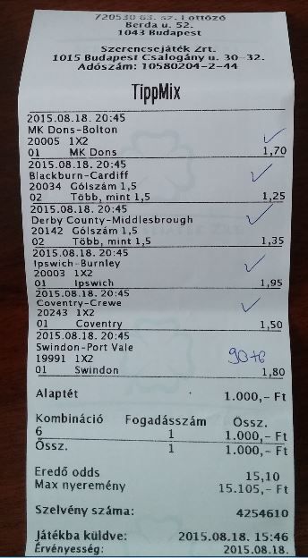 egy nagyon szép 6-os kötésem nyerőre állt.