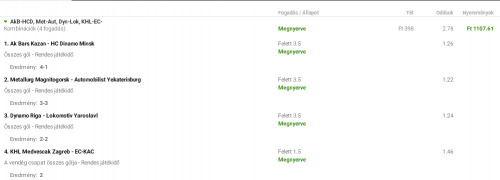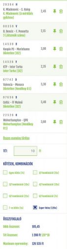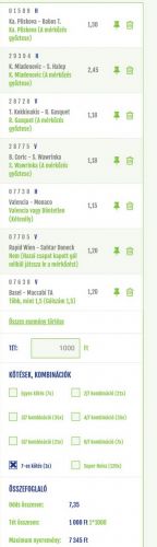 Az egyik 4/7 kombinált még jöhet. Eddig 1 ment el rajta, 3 jött. Tehát a maradék 3 meccsből 2 elmehet még. Milyen jó lenne, ha a pro egyértelműen kidobná a kombinált sorokat, hogy egyszerű legyen kiszámolni, ha elment pár meccs.