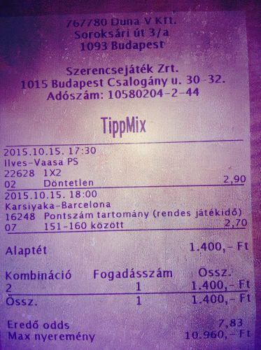 Kösz! Az egyetlen szépséghiba hogy volt egy másik hasonló tétes szelvényem amiből az egyik meccset igen csúnyán benéztem: