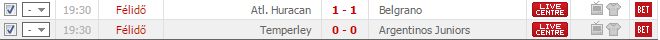 Atl. Temperley - Argentinos Juniors 1X2 Döntetlen 2,20 Nyertes
