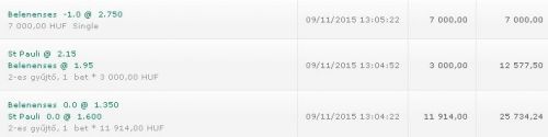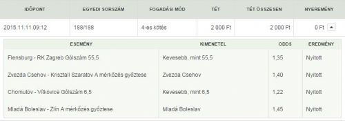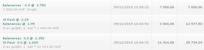 (1. félidő góljai - további piacok) 10/11/2015 Egyik sem 3.40 Vesztett