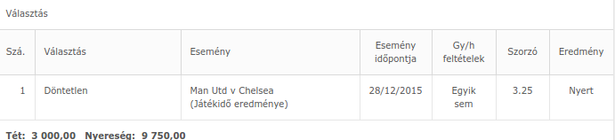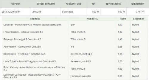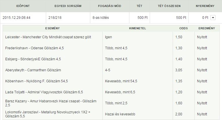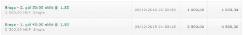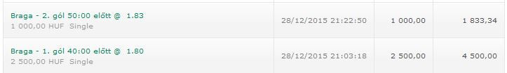 (Játékidő eredménye) 28/12/2015 Egyik sem 1.53 Nyert