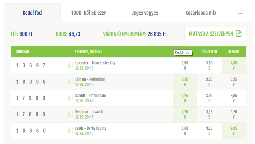 Mivel eddigi tippek (amiket persze tét nélkül néztem ki) jöttek, úgyhogy most ezzel teszek próbát.