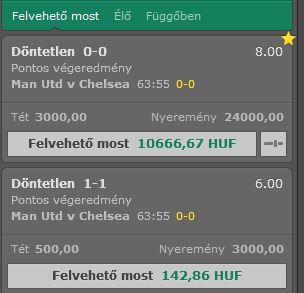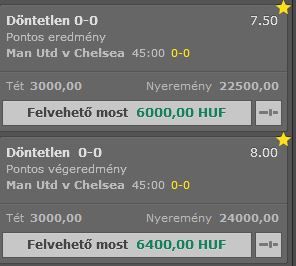 Manchester Utd. - Chelsea 1X2 + Mindkét csapat szerez gólt Döntetlen és nem 8,75 Nyitottvégül is raktatok 0:0-kat? mert asszem volt még itt is róla szó.