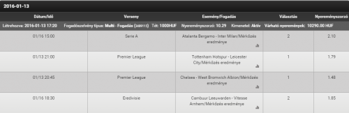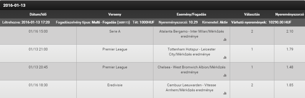 (Játékidő eredménye) 12/01/2016 Egyik sem 4.00 Függőben