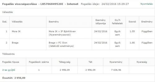 (Nyereményszorzó) 24/02/2016 Egyik sem 1.80 Függőben