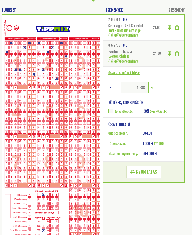 Velem is. 1-2 nyitott van még, de minek. Én vagyok a hülye, hogy nézegetek, találgatok. Barca és Bayern hendire all in, ennyit kellett volna csak csinálni ma.