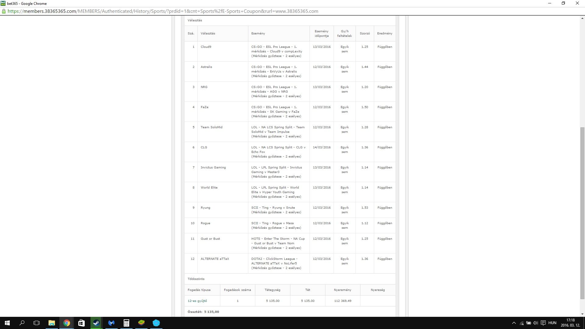 Sahtar Doneck v. Anderlecht 1.5gól felett. (nyert)Oké, hello 10.000,- Gondoltam visszahozom "legalább azt amit buktam, a következőket is megtettem 10.000,-el.