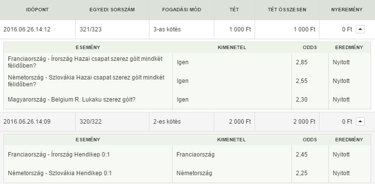 Na nekem ment 4 kami mára, szögletek, sárgák, gólok, össze vissza, össz tét 23e.