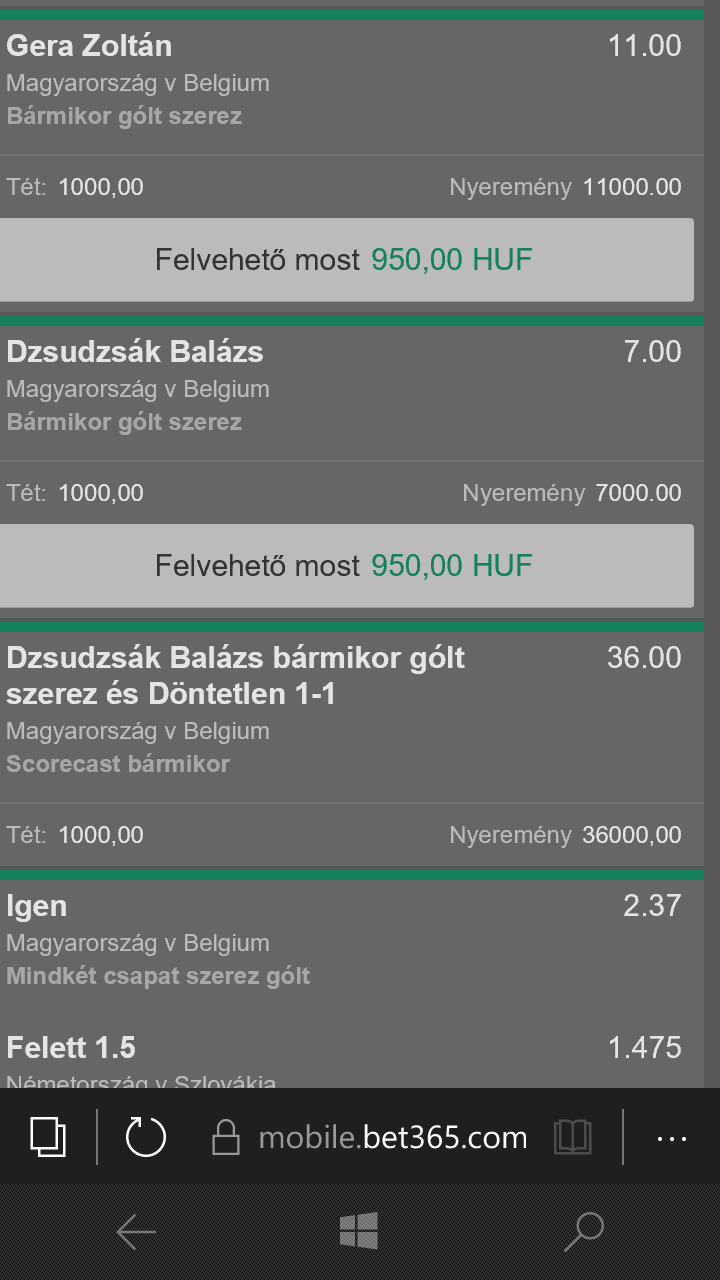 Ha megnézed tippmixpron többen raktak ránk mint a belgákra..Én csak remélni tudom hogy a mai meccsek nem olyanok lesznek mint a tegnapi wales meg portugál,pár korai gól jöhetne, hogy pörögjenek a meccsek.