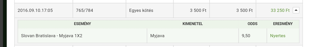 szerintem ez utóbbinak nagyobb esélye volt 46*-ért, mint előre az elsőnek 14*-ért.tegnap egy monfils szett, ma a fradi bukta hozott filllérekből egy kis kiutalni valót.