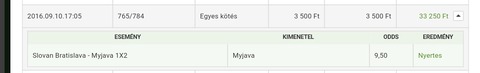 Sikeresen lecsúsztam 2 meccsről ma a bambaságom miatt. Elfelejtettem, hogy még fel is kell tölteni lóvét pro-ra. Zapresic - Hajduk D meg Slovacko - Zlin V volt mellette még francia döntetlen nem biztos, hogy jött volna minden de nagyon felkúrt, hogy már nyomtam a megerősítést és az utolsó pillanatban visszadobja a szemétláda