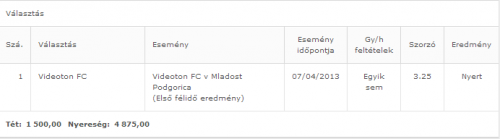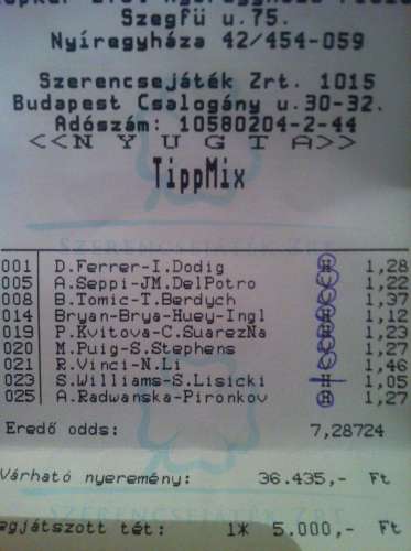 Mondjuk előtte Bwinen voltak jóval nagyobb tétek, de az online dolgot is hanyagolom egy ideje.Hétfőn raktam 5000el, az elment egy 1.05ös teniszen (36ezer), ez meg jött ma.
