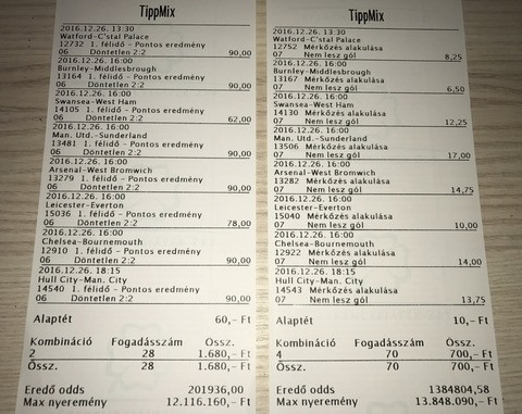 Hozzánk pár napja dobtak be egy ilyet szórólapon, hogy segítenek pro tippeket adni pénzért. Kár, hogy nem fényképeztem le, egyből széttéptem. Mókás volt, mert azt hittem hogy az ilyen tippeket adó emberek eltűntek a süllyesztőbe, 2-3 éve még nagyon sok volt belőlük.