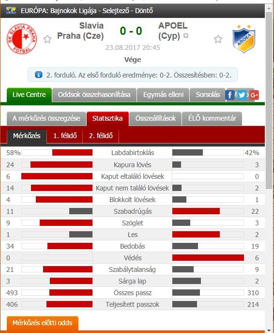 Ja láttam a hozzászólását... és tudod mit? Hogy mennyire másképp látjuk a meccseket arra példa, hogy félidőben elnézve a meccs statját azt gondoltam itt már nem is lesz gól...