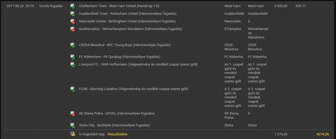 Persze lehetne jobb is, de hosszútávon sem vagyok veszteséges. Amúgy ez csak a napi tippek. Alul van egy olyan hogy 3 nap alatt háromszoros pénz. Az is összejött véletlenül. A Bundesliga rajtra ajánlott tippjeim is hoztak a konyhára. Szóval én ennyit tudok... egyelőre. Korábban Szabcsi is adott sorozatban 4 nyertes tippet és egy nyertes kombit is. Oké az angol nyitófordulóra adott tippek nem jöttek, de hát ez van, néha én is hibázok...