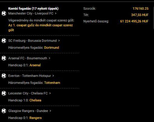 nekem egy GG kell oda, plusz mellé egy Arsenal -1AHC
