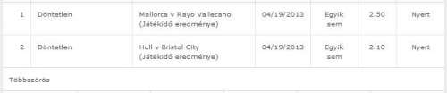 A héten eddig +5k az egyenlegem ( összességében 11,5k-t tettem fel), nem nagy összeg, mivel átlagban 2,5 és 4-es odds közötti szelvényeket alkotok, de legalább biztos hogy pluszos a hét