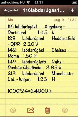 emiatt lesz perceken belül 10 k-val rövidebb az egyenlegem A héten semmit nem raktam szinte,mondom ma 3 jó meccs 2 ods, 10k tét erre
